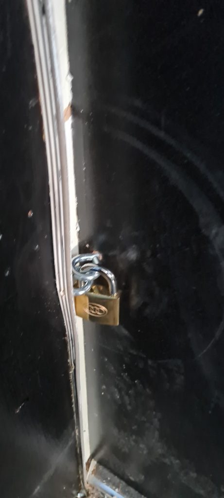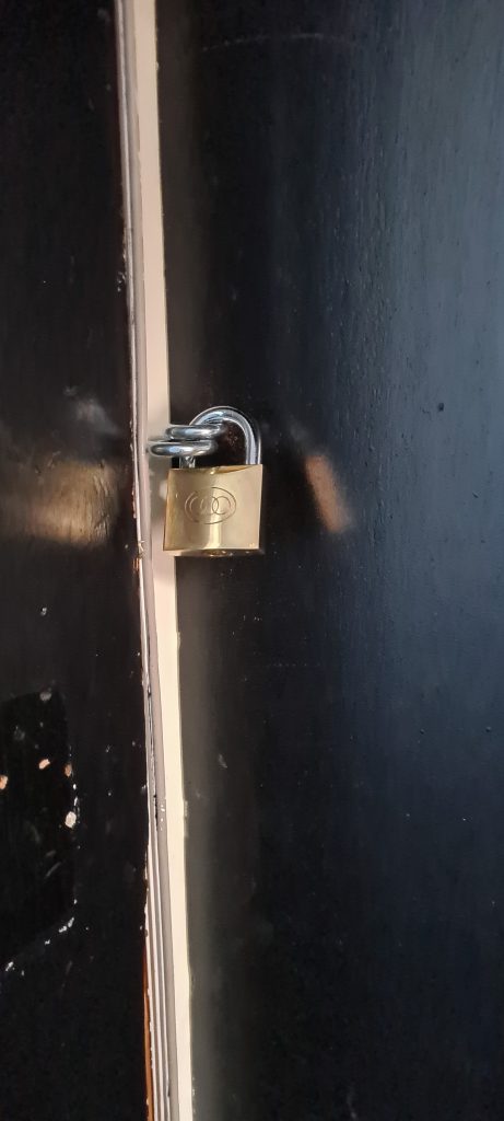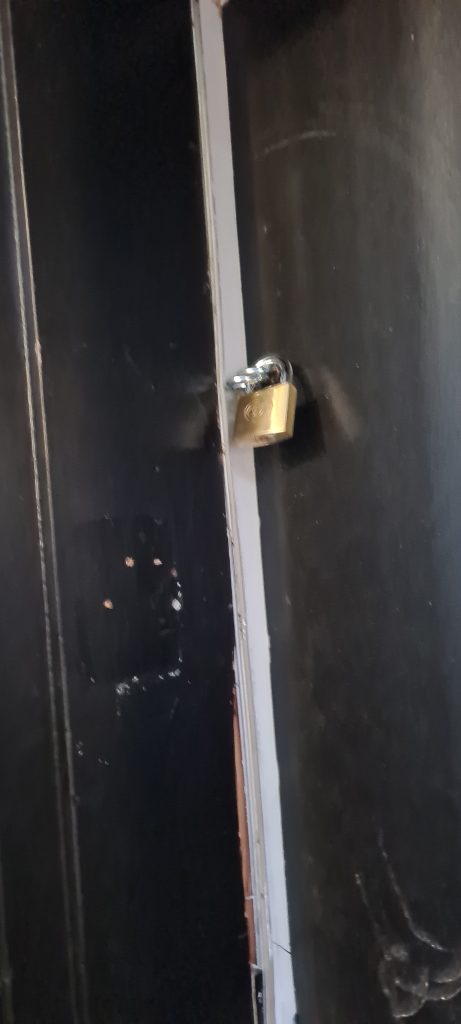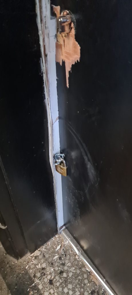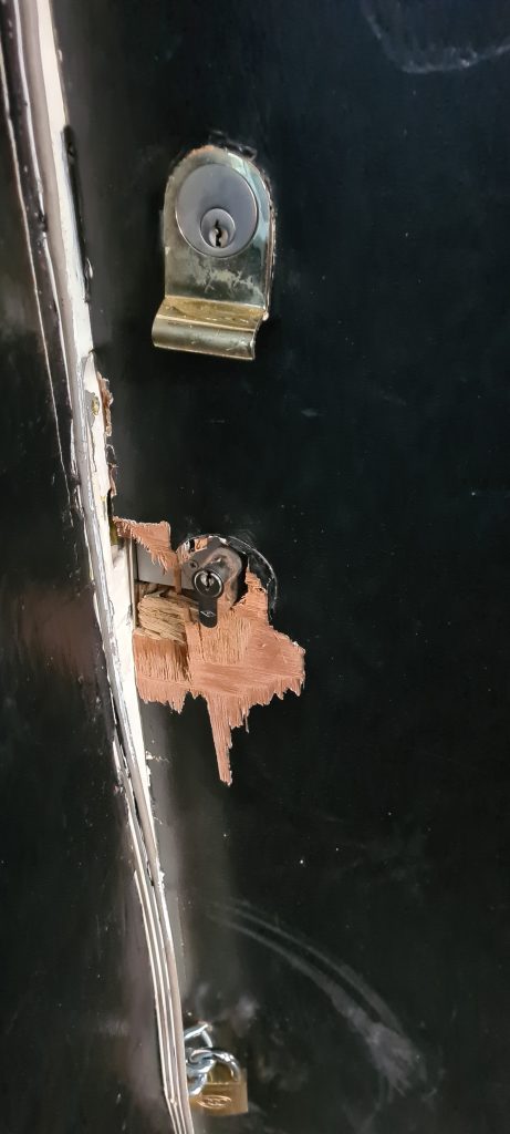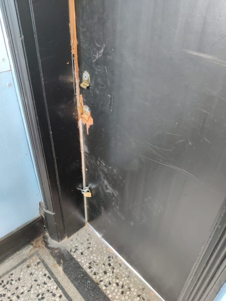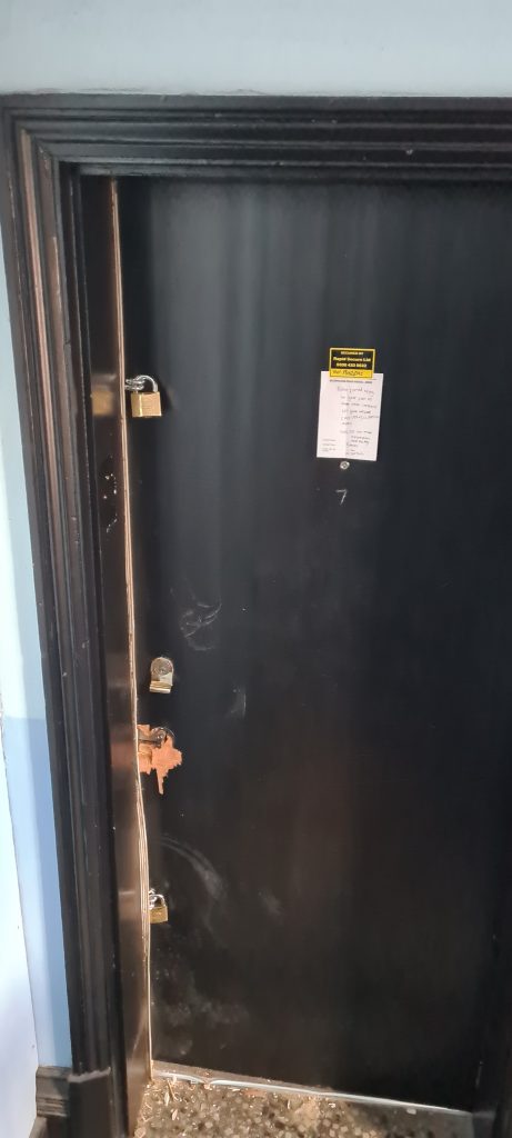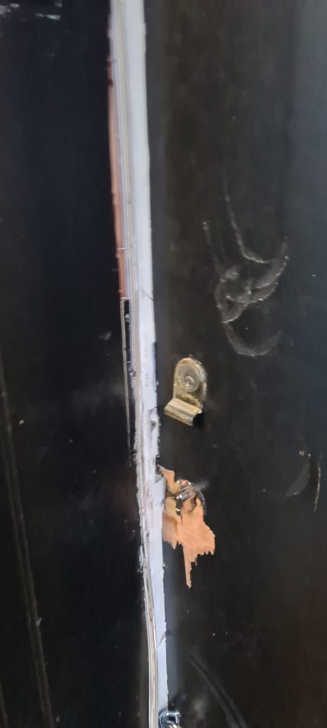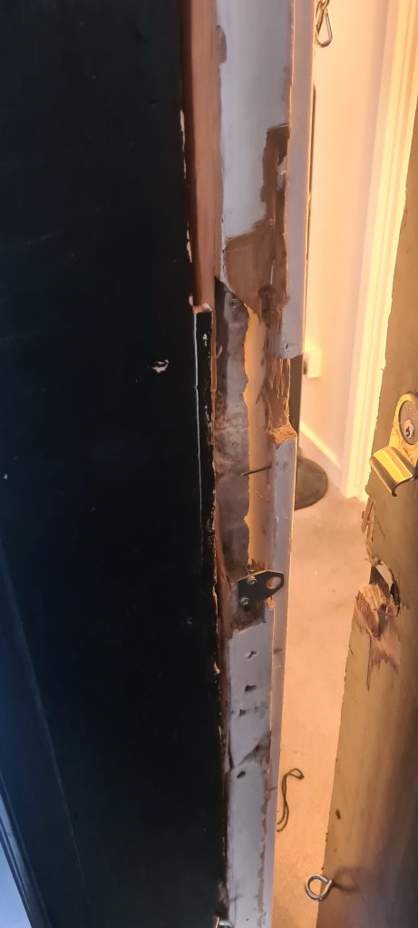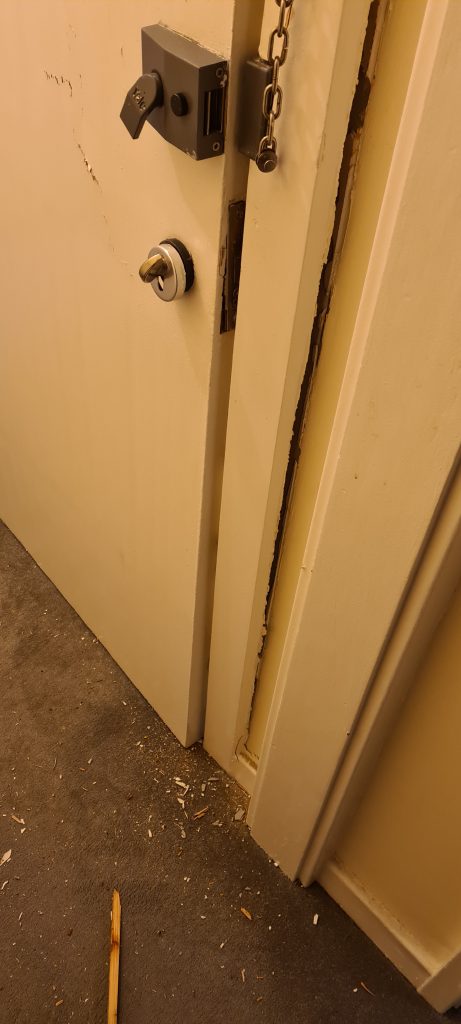 Below is the result and the conditions I’m left living in. No locks on the door. A fire safety & security risk.
