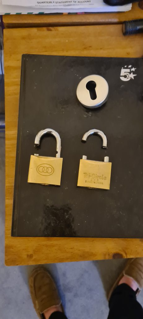 The door lock fitted on this day has since been damaged after yet another forced entry in October 2022 while I was away from the property.